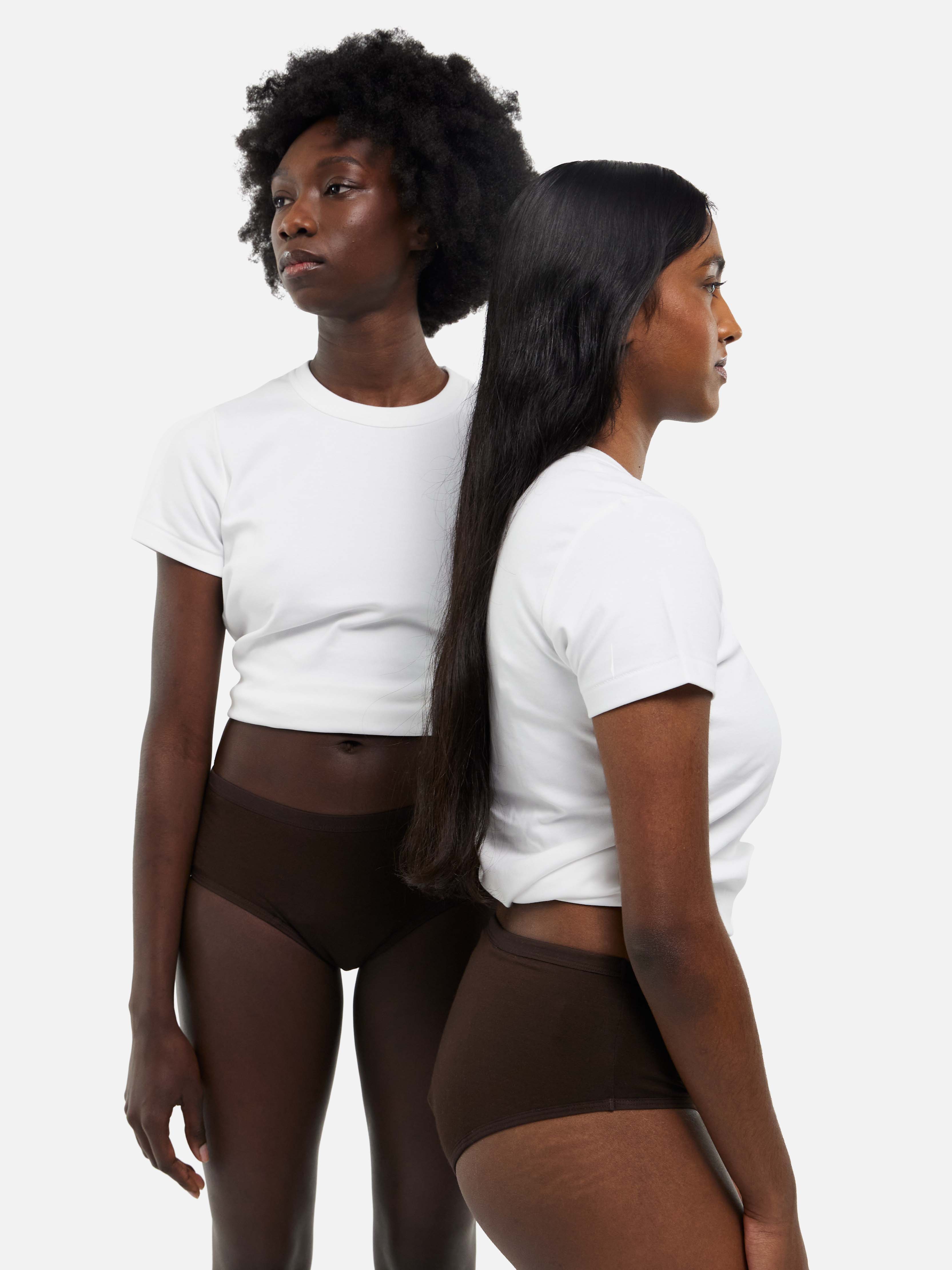 REPEAT décline sa célèbre culotte menstruelle noire en cinq tons chair dans une gamme nude éthique et inclusive, pour se fondre parfaitement sur toutes les teintes de peaux des Repeaters.
