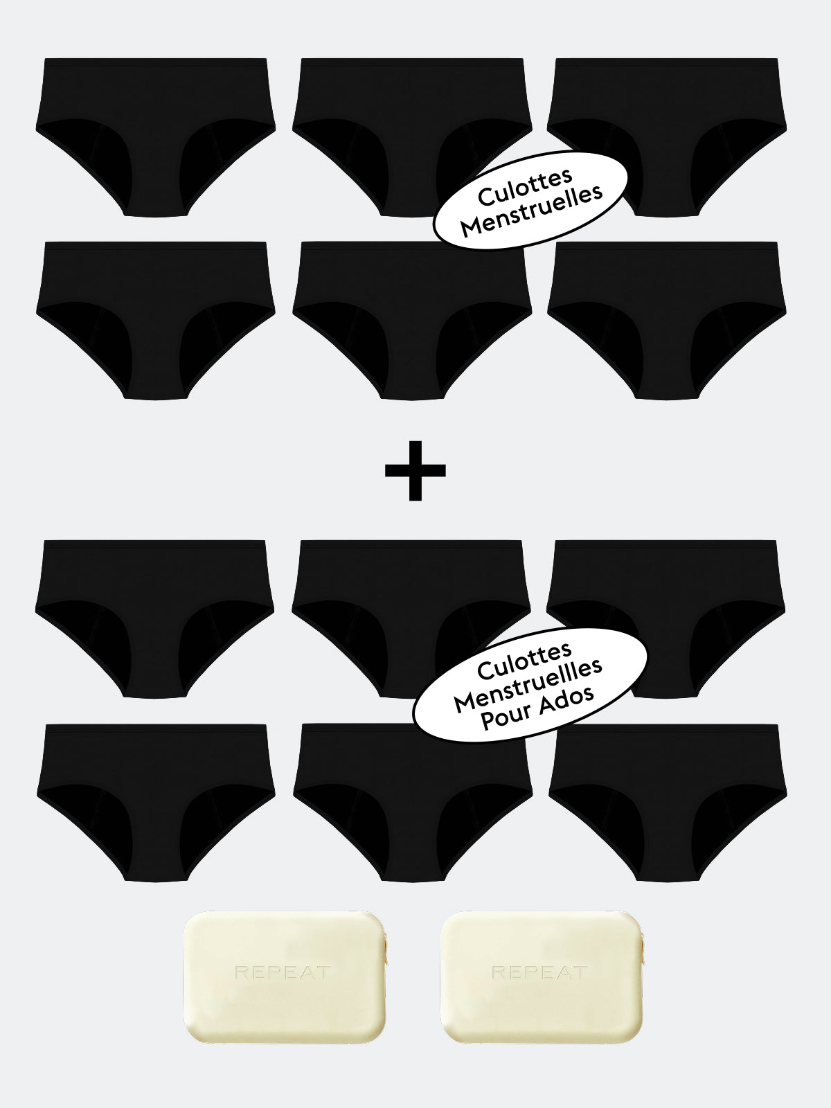 • 6 Culottes Menstruelles REPEAT Noires• 6 Culottes Menstruelles Ados REPEAT Teen Noires