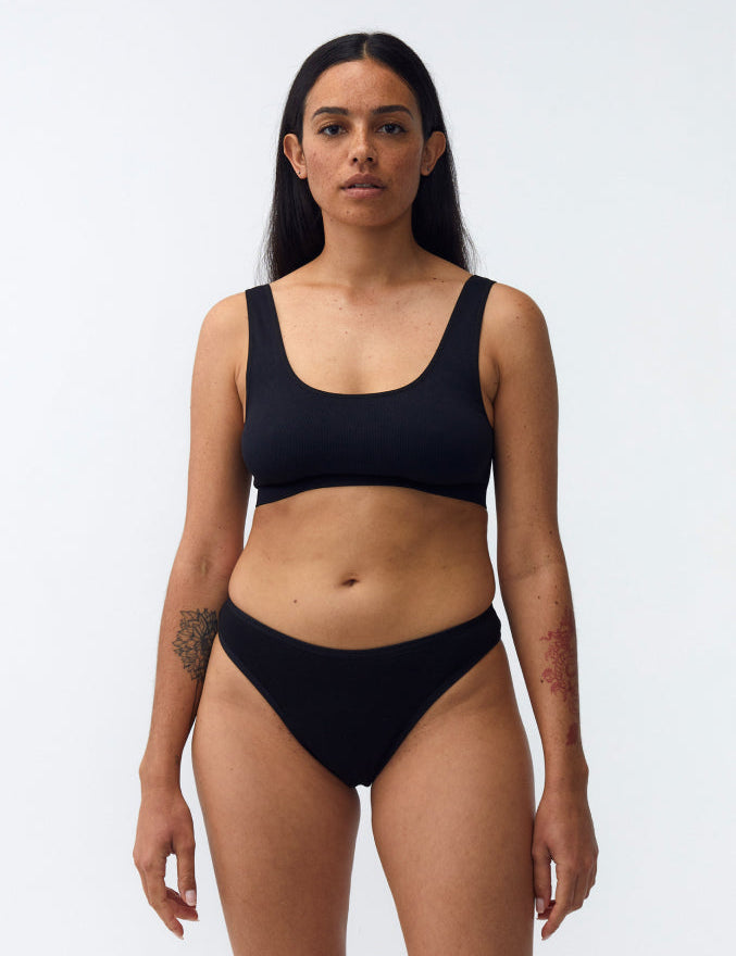 La culotte REPEAT absorbe tous tes flux et remplace totalement les serviettes et les tampons. Elle se porte comme une culotte ordinaire. La partie absorbante est composée de 3 couches pour te protéger pendant tes règles.
