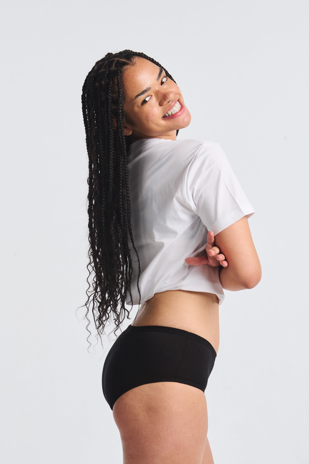 REPEAT décline sa célèbre culotte menstruelle noire tous flux en tailles pour adolescents pour offrir la solution efficace, confortable et stylée que votre ado mérite pendant ses règles.