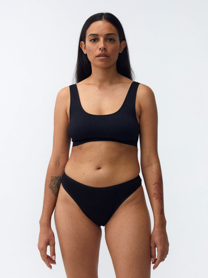 La culotte REPEAT absorbe tous tes flux et remplace totalement les serviettes et les tampons. Elle se porte comme une culotte ordinaire. La partie absorbante est composée de 3 couches pour te protéger pendant tes règles.